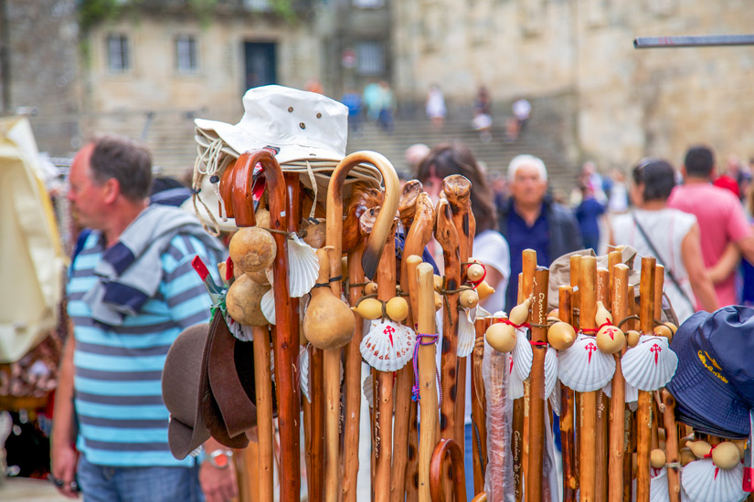 Viele Besucher treffen über den Jakobsweg zu Fuß in Santiago de Compostela ein. Der Jakobsweg ist ein weitverzweigtes Netz aus Wanderwegen, die alle zu diesem Ziel führen. Die Anreise ist aber auch schneller und bequemer möglich, per Flugzeug, Bahn oder Auto. Direktflüge zum Aeropuerto de Santiago-Rosalía de Castro (IATA: SCQ) gibt es von Frankfurt und vielen weiteren europäischen Großstädten. Das rund 10 Kilometer westlich gelegene Stadtzentrum erreichen Fluggäste mit dem Taxi (direkt vor dem Terminalgebäude) oder per Transfer im Shuttlebus. Am südlich der Altstadt gelegenen Bahnhof von Santiago de Compostela halten auch mehrmals täglich Hochgeschwindigkeitszüge von den Städten Madrid, Irun und Donostia-San Sebastian.