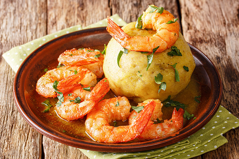 - Mofongo: Schweinefleisch oder Garnelen mit einem Püree aus Kochbananen und Knoblauch