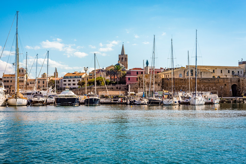 Eine weitere sehenswerte Stadt auf Sardinien ist Alghero – eine katalanisch geprägte Küstenstadt an der Nordwestküste Sardiniens, in der ihr kaum etwas von der antiken Vergangenheit der Insel spürt. Zwar könnt ihr noch immer die wuchtigen Stadtmauern bestaunen, doch im Inneren herrscht katalanisches Flair. Nicht umsonst wird diese Stadt auch liebevoll „Barceloneta“ – also kleines Barcelona genannt.