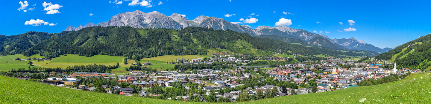 Schladming ist eine Stadtgemeinde in der österreichischen Obersteiermark. Sie liegt auf einer Höhe von 745 Metern, verläuft entlang des Ennstals und zieht insbesondere sportliche Urlauber an. Eingebettet in die Bergwelt zwischen Schladminger Tauern und dem Dachstein ist der Urlaubsort ein begehrtes Ziel für Familien, Paare und Alleinreisende, die sich in ihrem Urlaub nach Aktivitäten und Abenteuern sehnen. Nebenbei gehört Schladming am Dachstein zu einer der wasserreichsten Regionen des Landes. Rund 300 Bergseen, 1.000 Quellen und 100 Wasserfälle bieten wunderschöne Orte, die ihr im Rahmen von Wanderungen, Nordic Walking oder Fahrradtouren erkunden könnt.