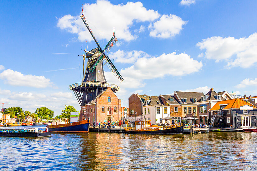 Als nächste Ziel auf unsere Liste der schönsten Städte der Niederland findet sich dieses Juwel: Das absolute Highlight hier ist die imposante Grote Kerk oder Sint-Bavokerk, eine gotische Kirche aus dem 14. Jahrhundert, die das historische Zentrum dominiert. Ihre weltberühmte Müller-Orgel wurde sogar von Mozart und Händel gespielt! Der Marktplatz selbst ist das pulsierende Herz von Haarlem, gesäumt von außergewöhnlichen Gebäuden und gemütlichen Cafés. Jeden Samstag verwandelt sich die Szenerie in einen lebhaften Wochenmarkt, auf dem ihr regionale Spezialitäten probieren könnt.