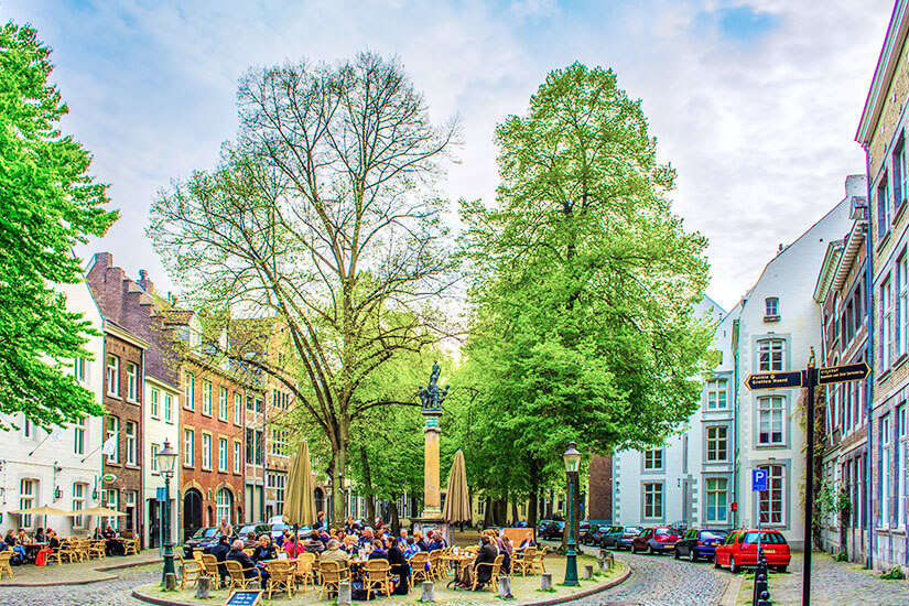 Sprechen wir von den schönsten Städten der Niederlande, darf natürlich Maastricht nicht auf der Liste fehlen: Hier trifft Geschichte auf modernen studentisches Flair. Stellt euch vor, ihr schlendert durch gewundene Kopfsteinpflastergassen, vorbei an prächtigen Kirchen und historischen Gebäuden aus unterschiedlichen Epochen. Das Herzstück der Stadt ist der Vrijthof, einer der schönsten Plätze der Niederlande. Bewundert bei einem Kaffee die imposante Basilika des Heiligen Servatius und die Sankt-Jans-Kirche. Was ihr auf keinen Fall verpassen dürft: Die Buchhandlung Dominicanen! In einer ehemaligen Dominikanerkirche aus dem 13. Jahrhundert könnt ihr zwischen hohen gotischen Säulen nach Lektüre stöbern – definitiv ein spektakulärster Anblick!