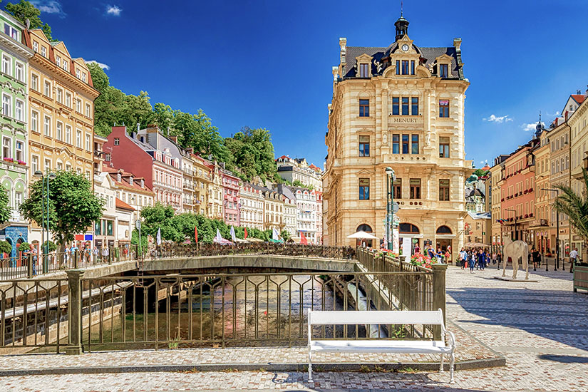 Beim Kururlaub in Tschechien fällt den meisten Reisenden hierzulande Karlsbad (tschechisch Karlovy Vary) ein. Leidet man an Gicht, Diabetes oder Störungen des Stoffwechsels, profitiert man von der Wirkung des Heilwassers von zwölf Quellen. Daneben erfreuen sich aber auch Gesunde an den Bädern mit Wassertemperaturen von um die 30 °C. Egal, wie es um euch bestellt ist, von Karlsbad werdet ihr auch sonst begeistert sein, zum Beispiel während eines Gangs entlang des Egers, welcher beiderseits von einer Promenade samt schöner Häuser gesäumt wird. Lustwandelt durch die zwischen 1871 bis 1881 erbaute Mühlbrunnenkolonnade und werft einen Blick auf die hölzerne Marktkolonnade.