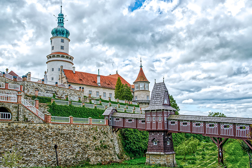 Unser letzter Tipp bezüglich der schönsten Städte in Tschechien ist Neustadt an der Mettau (tschechisch Nové Město nad Metují) in Nordostböhmen. Highlight ist eindeutig das Schloss, dessen Entstehung auf das Jahr 1501 zurückgeht und welches von drei Seiten von der Mettau umflossen wird. Vom nördlichen Hauptturm kann man aus 25 m Höhe auf das nahe Adler- und das etwas weiter entfernte Riesengebirge blicken. Eine überdachte Holzbrücke führt innerhalb des Schlossgeländes vom oberen zum unteren Garten. Gleich neben dem hübschen Bau befindet sich der Hus-Platz, an den weitere ansehnliche Gebäude grenzen.