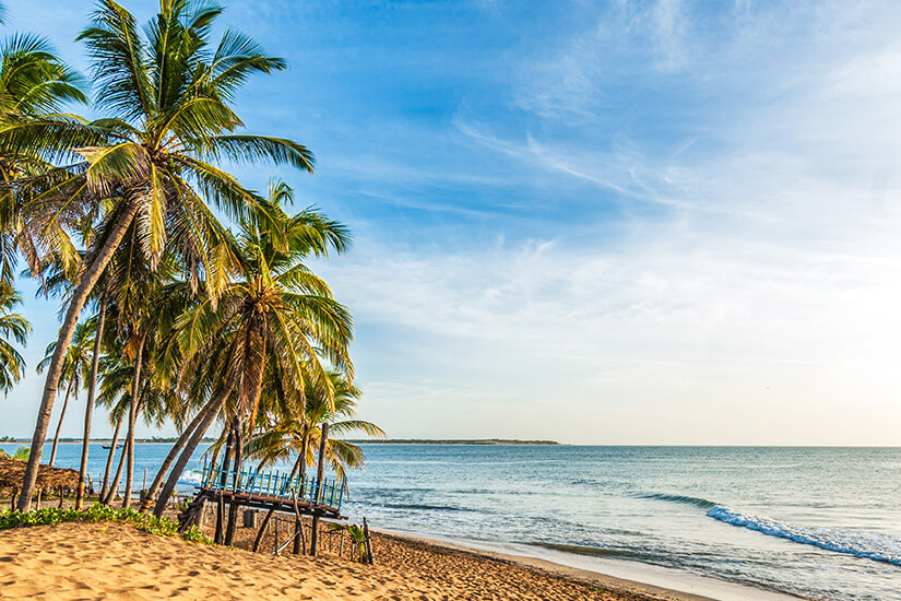 Einer der schönsten und friedlichsten Strände von Sri Lanka ist ohne Zweifel der Kallady Beach. Mit dem Auto ist er etwa 50 Minuten von Pasikuda entfernt. Ein malerischer Holzsteg führt direkt über den Strand und ins Meer. Packt euch eine Hängematte in die Strandtasche, die ihr vor Ort bestens zwischen den Palmen aufspannt. Wie an vielen Stränden von Sri Lanka bietet sich auch hier eine Schnorchel- oder Tauchtour an. Lasst euch dabei am besten von einem erfahrenen Guide begleiten, denn weiter draußen gibt es Strömungen, die nicht ganz ungefährlich sind. Das bedeutet auch, dass nur erfahrene Schwimmer weit hinausschwimmen sollten.