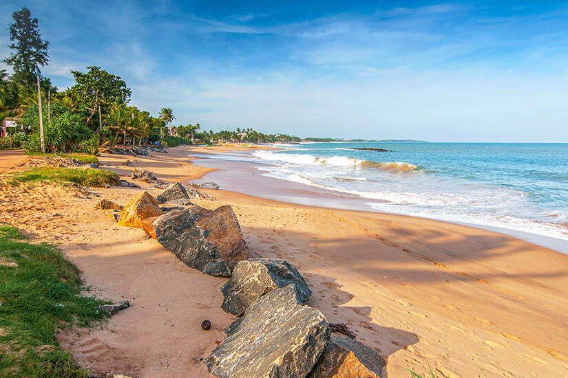 Ein weiterer Top-Strand auf Sri Lanka ist der Beach von Wadduwa, einem kleinen Ort an der Westküste der Insel. Hier sind die Strände alle recht schmal, ein Besuch lohnt sich aber trotzdem. Schließlich gibt es ihr eine gute Hotelinfrastruktur und ihr erreicht den Ort von Colombo und dem Flughafen in etwa eineinhalb Stunden. Zwar gibt es hier wundervolle Strände, aber weniger Restaurants und Verkäufer als anderswo. Ihr werdet am Wadduwa Beach aber immerhin ein kleines Restaurant entdecken. Besonders angenehm wird euer Aufenthalt jedoch durch Umkleidekabinen, Duschen und Toiletten, die ihr direkt am Strand vorfindet. Alles Weitere erhaltet ihr bei Bedarf im Hotel oder im Ortszentrum. Der Strand ist schnell mit dem Auto oder zu Fuß erreicht. Der Wadduwa Bahnhof liegt zudem nur einen Kilometer entfernt.