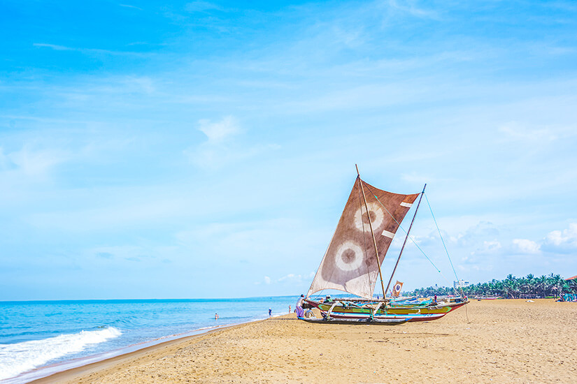 Am Strand könnt ihr Beachvolleyball oder Fußball spielen. Da der Sand hier besonders weich ist, eignet er sich hervorragend für Sportarten aller Art. Ein paar Meter vom Wasser entfernt gibt es eine Straße gesäumt mit vielen kleinen Restaurants, Bars und Souvenirläden. Katamarane segeln über das Wasser, und wer bei dem Anblick selbst Lust auf eine Aktivität bekommt, kann einfach eine Bootstour buchen, einen Segelkurs machen, Wind- und Kitesurfing ausprobieren oder tauchen gehen. Die beste Reisezeit für die Westküste von Sri Lanka ist von Dezember bis März. Im April ist es hier sehr heiß, was schnell unangenehm werden kann. An der Ostküste ist dies beinahe umgekehrt, da der Monsun die Insel zu unterschiedlichen Zeiten betrifft.