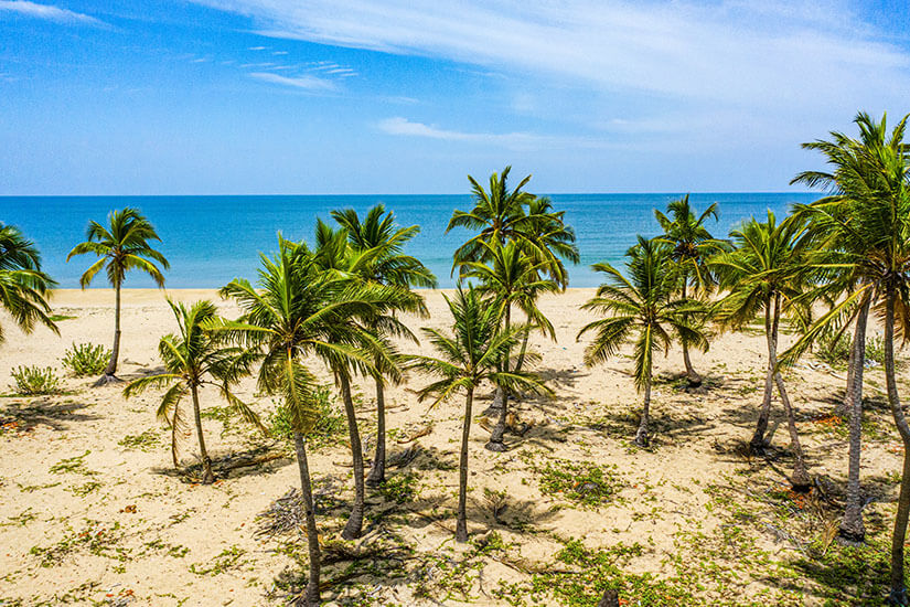 Im Nordwesten von Sri Lanka befindet sich ein weiteres Highlight der Insel, der Kalpitiya Beach. Kalpitiya ist genau genommen ein Archipel aus 14 kleinen Inseln mit einer besonders schönen Küste. Viele Sri Lanka-Experten sagen diesem Ort eine glänzende Zukunft als Hotspot für Urlauber aus aller Welt voraus. Zurzeit ist es hier noch nicht allzu gut besucht. Das solltet ihr ausnutzen, um Kalpitiya in Ruhe zu erkunden. Der gleichnamige Strand, Kalpitiya Beach, liegt ganz im Norden. Er ist für Wassersportaktivitäten sowie für Delfin- und Walbeobachtung bekannt. Der sandige Abschnitt lässt sich von der Kalpitiya-Lagune aus per Boot erreichen.