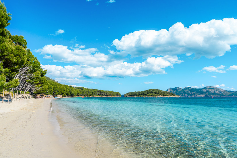 Ganz im Norden von Mallorca nahe des Ortes Pollença liegt ein Strand, der besonders idyllisch wirkt. Er grenzt an einen Pinienwald und malerische Berge. Naturfreunde werden hier ein Paradies vorfinden. Aufgrund seiner Schönheit hat der schmale, langegezogene Strand aber auch immer mehr Besucher, sodass inzwischen sogar Liegestühle angeboten werden und Rettungsschwimmer vor Ort sind. Sie sorgen für sicheres Baden. Der wunderschöne Ausblick aufs Meer und die Küste ist es Wert, diesem Strand während des Urlaubs auf Mallorca einen Besuch abzustatten.