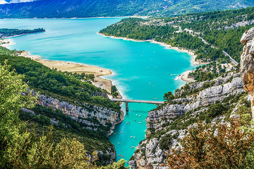 Der Lac de Sainte-Croix erstreckt sich auf eine Fläche von knapp 22 Quadratkilometern und ist teilweise bis zu 90 Meter tief. Die Umgebung des Sees gilt als sehr reizvoll, gibt es doch idyllische Hügel, duftende Lavendelfelder und malerische Dörfer zum Wandern und Entdecken. Ein Höhepunkt ist außerdem die Brücke Pont du Galetas, die über die Schlucht am Seezufluss verläuft.