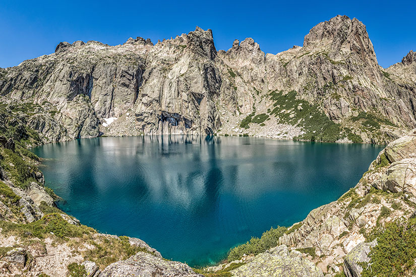 Vom französischen Festland verschlägt es uns jetzt ins Herz der Mittelmeerinsel Korsika. Dort nämlich, mitten im zentralen Hochland, im Hochtal Restonica, befindet sich der Lac de Capitello, auch als Capitello-See bekannt. Er ist zusammen mit dem nahegelegenen Lac de Melo eines der Hauptwanderziele auf der Insel.