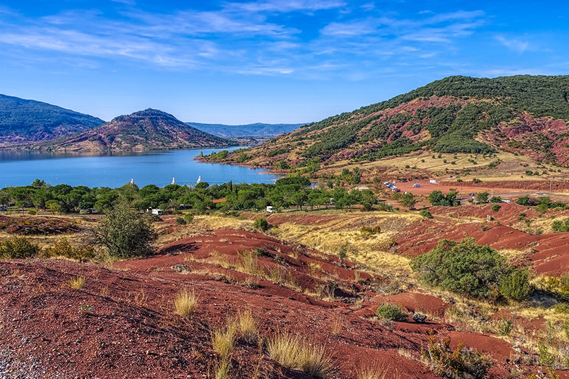 Der Lac du Salagou ist mit rund sieben Quadratkilometern sicherlich kein Riese, ist aber in der Region für seine Wasserqualität und seine hohe Wassertemperatur bekannt und beliebt. Es lässt sich herrlich wandern und die Weinanbaugebiete und Felder mit Olivenbäumen sind prädestiniert für eine kulinarischer Erkundungsreise.