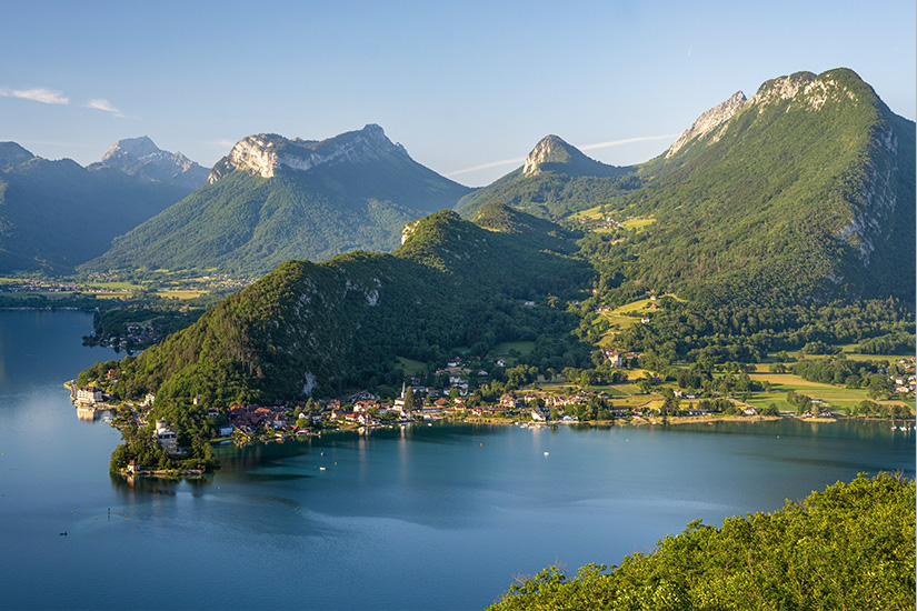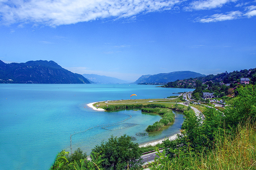 Der Lac d’Annecy ist mit rund 27 Quadratkilometern einer der größten Seen des Landes. Auch wenn die Wassertemperatur im Sommer nicht ganz an die anderen Seen der Region heranreicht, laden angenehme 22 °C viele Wanderer und Urlauber zu einem Bad ein.