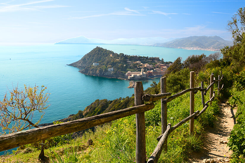 Von hier oben bietet sich euch ein 360-Grad-Panorama, das von der Cinque Terre bis nach Portofino reicht. Bei klarem Wetter könnt ihr sogar Korsika am Horizont erkennen. Der Abstieg führt zu einem der schönsten Wildstrände der Region, sodass ihr eure Wanderung mit einem erfrischenden Bad abschließen dürft.