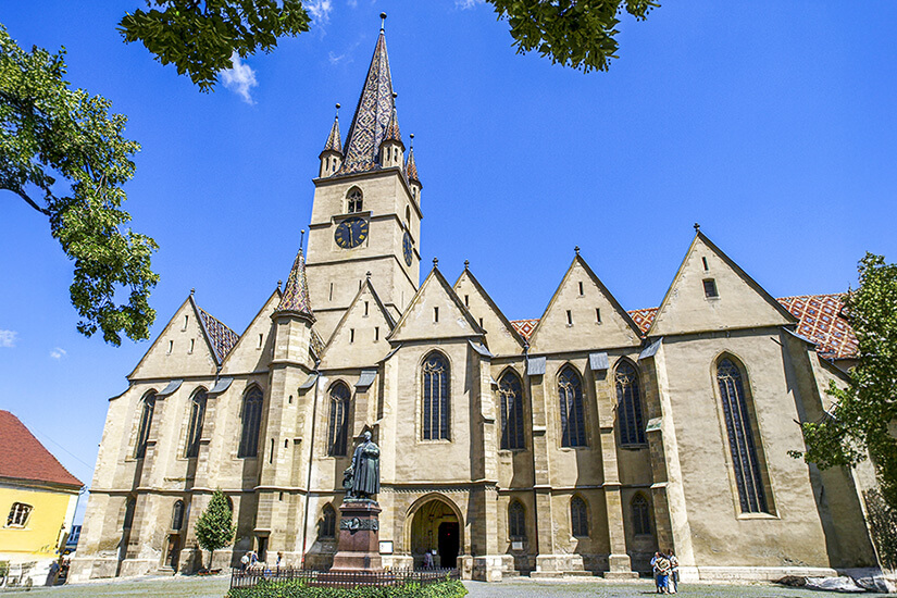 Das eindrucksvolle gotische Bauwerk aus dem 14. Jahrhundert dominiert die Skyline von Hermannstadt. Ihr rund 73 Meter hoher Turm bietet einen atemberaubenden Blick über die Stadt und die umliegende Landschaft. Von außen besticht die Kirche mit ihrer schlichten Bauweise, im Inneren bietet sie kunstvolle Fresken, eine imposante Orgel und historische Grabmäler.