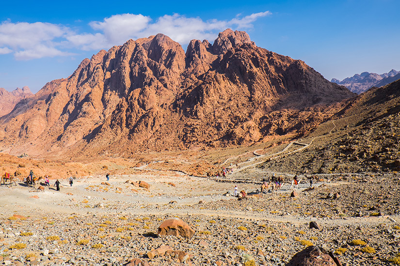 Sinai – dieser Name umschreibt gleich mehrere Dinge in Ägypten. Einerseits ist es der Name der Halbinsel, die Ferienorte wie Taba und Sharm El-Sheikh beheimatet. Andererseits wird damit ein Gebirge der selbigen Halbinsel bezeichnet. Ebenso trägt ein Berg innerhalb dieses Gebirges noch einmal gesondert den berühmten Namen. Wohin es euch aber auch genau verschlagen sollte: Die Landschaft wie aus 1001 Nacht begleitet euch während der Reise. Taucht in das Leben der Beduinen ein und genießt die Sonne Ägyptens bei einem Kamelritt durch die Wüste. Oder lasst euch auf eine spektakuläre Wanderung ein, die euch geschichtsträchtige Orte aus der Bibel zeigt.