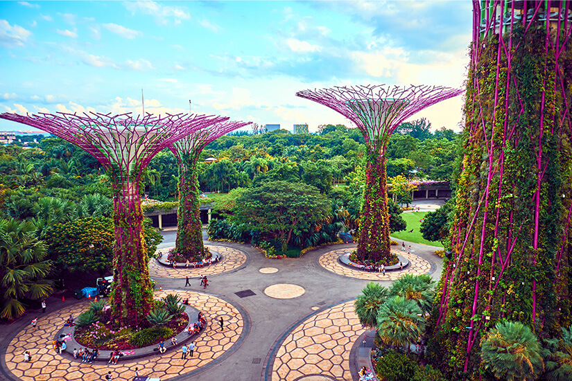 Willkommen in den Gärten der Zukunft – die Singapore Gardens by the Bay beeindrucken mit ihren 50 Meter hohen „Superbäumen“, welche dank der modernen Beleuchtung in allen Farben des Regenbogens aufleuchten können. Hier fühlt ihr euch Jahre in die Zukunft versetzt und könnt Fotos mit dem Wolkenkratzer-Panorama im Hintergrund schießen, das die Kulisse passend rahmt. Riesige Gewächshäuser und mehr als 100 Hektar Fläche mit exotischer Bepflanzung zählen zu den Eckpunkten der Gardens by the Bay.