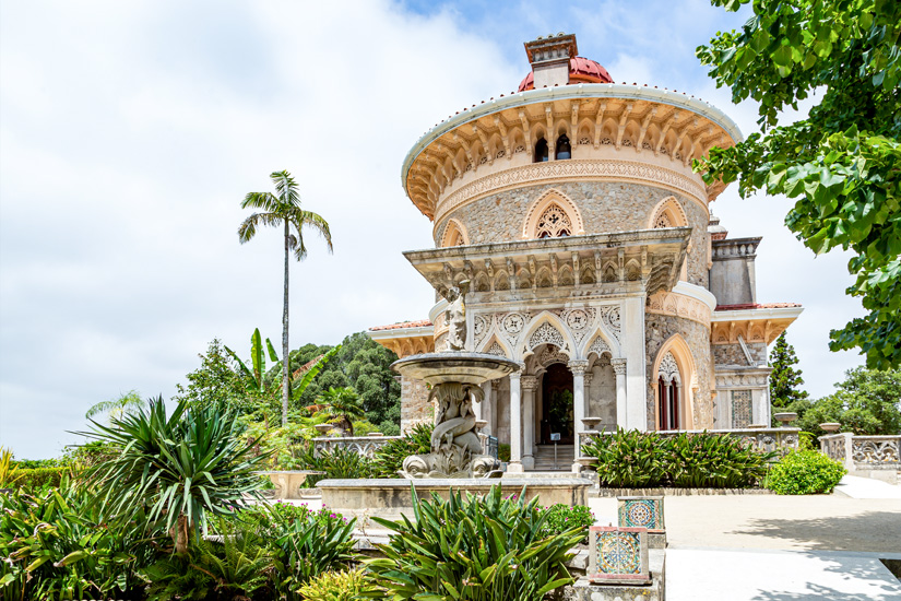 Eine im arabisch anmutenden Baustil erbaute Villa ist der Palácio de Monserrate. Sie stellt einen optischen Kontrast zu den anderen Palästen Sintras dar. Im ersten Moment fühlt ihr euch wie in 1001 Nacht, wenn ihr das zum Weltkulturerbe der UNESCO zählende Gelände von Weitem seht. Auch genauere Ansichten sind lohnend, allein wegen der filigranen Schnitzereien in der Steinfassade. In den ruhigen Gärten könnt ihr, wie schon im Park des Palácio Nacional da Pena, wunderbar entschleunigen. Es handelt sich bei dem Palácio de Monserrate eher um einen Geheimtipp, der weniger von Besuchern überlaufen ist als andere Sehenswürdigkeiten in Sintra.