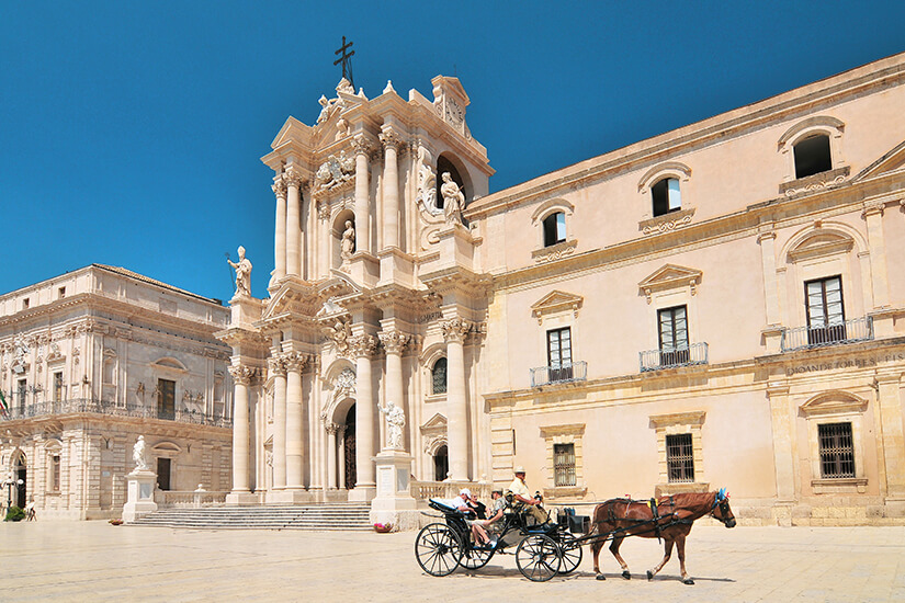 Imposante Überreste aus alter Zeit gibt es auch in Syrakus zu bewundern, etwa einen Apollontempel und den Dom Santa Maria delle Colonne. Zudem finden sich ein altes Rathaus und weitere Kathedralen in der Stadt, die übrigens seit 2005 UNESCO Weltkulturerbe ist. Einen Ausflug auf die ruhige Ortigia-Insel, die über eine Brücke mit Syrakus verbunden ist, könnt ihr euch nach all der Kultur ebenfalls gönnen. Die Insel darf nur zu Fuß besucht werden und verspricht daher eine kleine Auszeit vom mitunter geschäftigen Treiben in den Städten Siziliens.