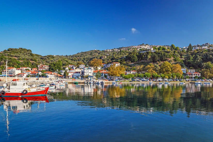 Glossa ist auch für den Hafen bekannt, denn hier in Loutraki laufen einige große Fähren an. Von dort führt ein steiler Weg hinauf ins Dorf, der euch sicherlich ins Schwitzen bringt. Wenn ihr nicht ohnehin auf diesem Wege die Insel erreicht, empfiehlt es sich trotzdem den verschlafenen Hafen mit toller Lage zu besuchen. Hier könnt ihr zudem in der Taverne entspannen und euch mit frischen Meeresfrüchten verwöhnen lassen.