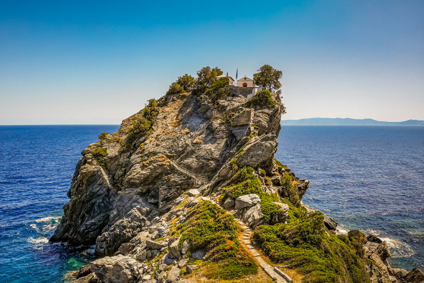 In Palouki, auf einer kleinen Halbinsel unweit vom Hauptort Skopelos, findet ihr eine Vielzahl an Klöstern und Kirchen. Die meisten Klöster sind in den Hang gebaut, sodass ihr den Berg erklimmen müsst, um sie zu besichtigen; doch die Mühe lohnt sich, denn von oben genießt ihr einen unglaublichen Panoramablick. Auch die Klöster selbst sind absolut sehenswert, vor allem das Kloster Evаngеlistria, welches zugleich das am leichtesten zugängliche der Gebäude ist. Auch das höchste der Klöster, das Kloster Timios Prodromos, eignet sich hervorragend für einen Tagesausflug.