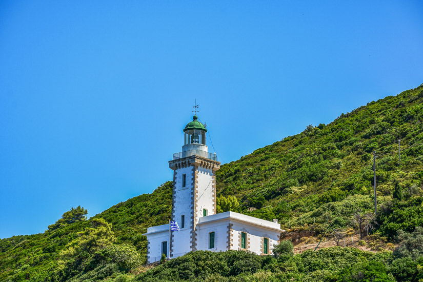 Als besonders romantische Sehenswürdigkeit auf Skopelos gilt der Leuchtturm. Er ist kaum zu übersehen und besticht nicht nur durch seine Größe, sondern auch durch seine Schönheit im typisch griechischen Stil. Somit hebt er sich markant von der umliegenden Landschaft ab und bietet einen beeindruckenden Ausblick über das Meer. In der Nähe gibt es zudem wunderschöne Strände, sodass ihr euch nach dem Aufstieg im kristallklaren Wasser abkühlen könnt.