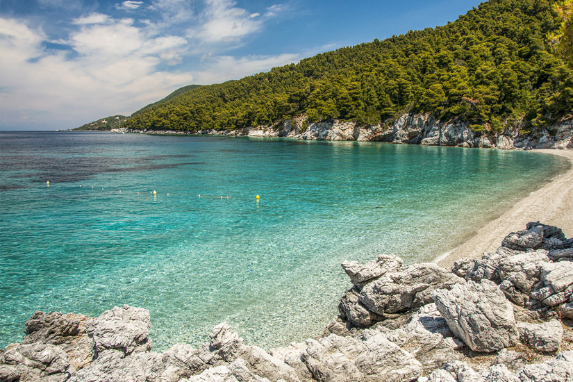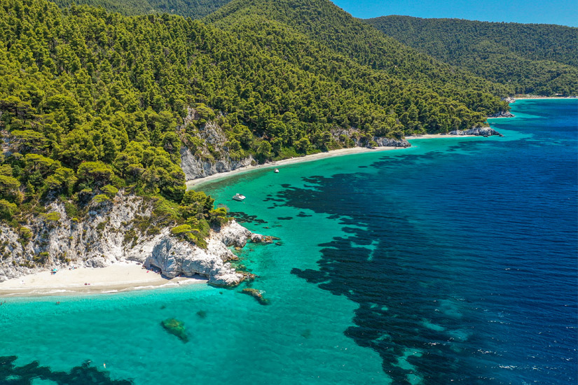 Dass bislang nur wenige Besucher nach Skopelos kommen, macht den Charme der griechischen Insel aus – sorgt aber dafür, dass die Sehenswürdigkeiten & Co nicht immer einfach zu erreichen sind, wie ihr nun bereits wisst. Auch die schönsten Strände der Insel sind mitunter abgelegen, belohnen euch für die Mühe aber mit glasklarem Wasser, weißen Sandstränden und Ruhe, wie sie kaum anderswo in Griechenland zu finden ist. Die paradiesischen Stände sind daher für viele Reisende der Hauptgrund, um nach Skopelos zu kommen; und an Auswahl mangelt es nicht…