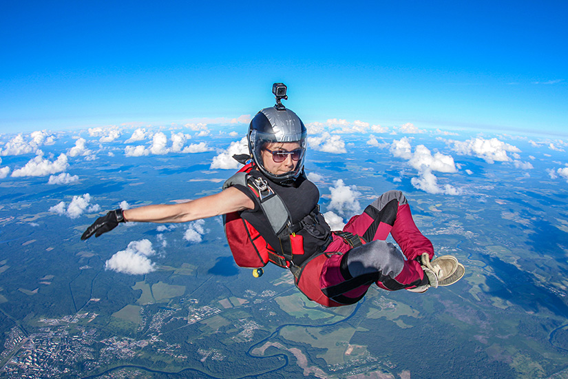 Skydiving ist auch als Fallschirmspringen bekannt. Dieser beliebte Luftsport ist sehr sicher, aber zugleich auch sehr aufregend. Er beginnt mit einem Flug im Helikopter oder Flugzeug von etwa 15 Minuten. Sobald die gewünschte Flughöhe erreicht ist, seid ihr bereit für den Abflug. Im Tandem springt ihr los und befindet euch bis zu 60 Sekunden lang im freien Fall – ein unglaublicher Adrenalinkick! Dann geht der Fallschirm auf und ihr gleitet über traumhafte Landschaften. Die Öffnung erfolgt meist auf 700 bis 800 Metern Höhe.