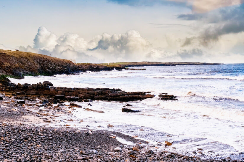 Dieser wunderschöne Sandstrand bietet exzellente Bedingungen, zum Surfen oder Stand-up-Paddling. Wenn ihr an der drei Kilometer langen Küstenlinie spazieren geht, entdeckt ihr in Felsen eingebettete Fossilien und ein Schiffswrack der spanischen Armada aus dem Jahr 1588. Ihr könnt euch auch im feinen Sand niederlassen und relaxen.