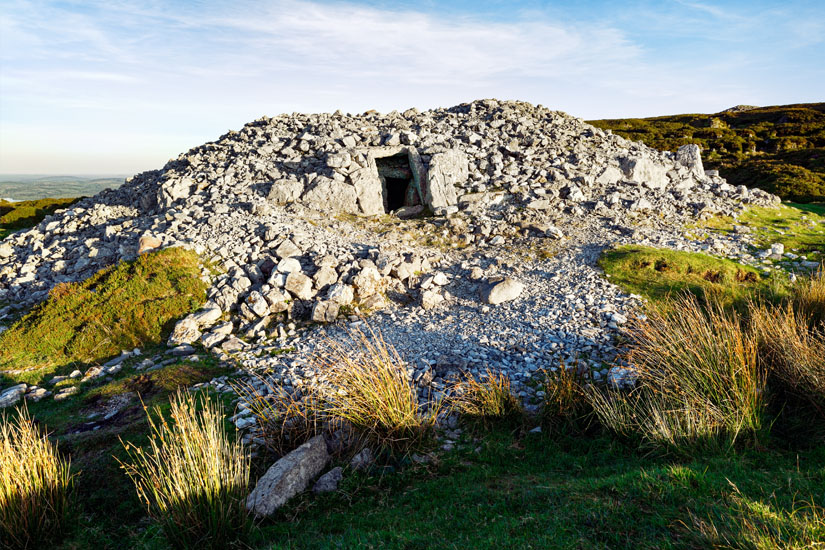 Der Name dieser Sehenswürdigkeit bedeutet „Das dünne Viertel“. Es ist ein weitläufiger neolithischer Komplex mit Elementen aus der Jungsteinzeit, zu denen 14 Großsteingräber gehören. Carrowkeel zählt zu den fünf größten Passage Tomb Cemeterys in Irland. Wenn ihr Carrowkeel besichtigen möchtet, fahrt ihr zur Kalksteinhochebene der Bricklieve Mountains. Die weißen Steinhügel „The Pinnacle“ fallen direkt auf.