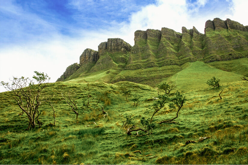 Dieser 527 Meter hohe Tafelberg ist ein Höhepunkt in Irland und eignet sich somit perfekt für eine Wanderung sowie eine atemberaubende Aussicht. Er steht majestätisch zehn Kilometer nördlich von Sligo und ist das Wahrzeichen der Grafschaft. Entstanden ist er während der Eiszeit. Der ursprüngliche Bergrücken wurde von Gletschern geschliffen. So wurden die charakteristischen Dartry Mountains geformt.