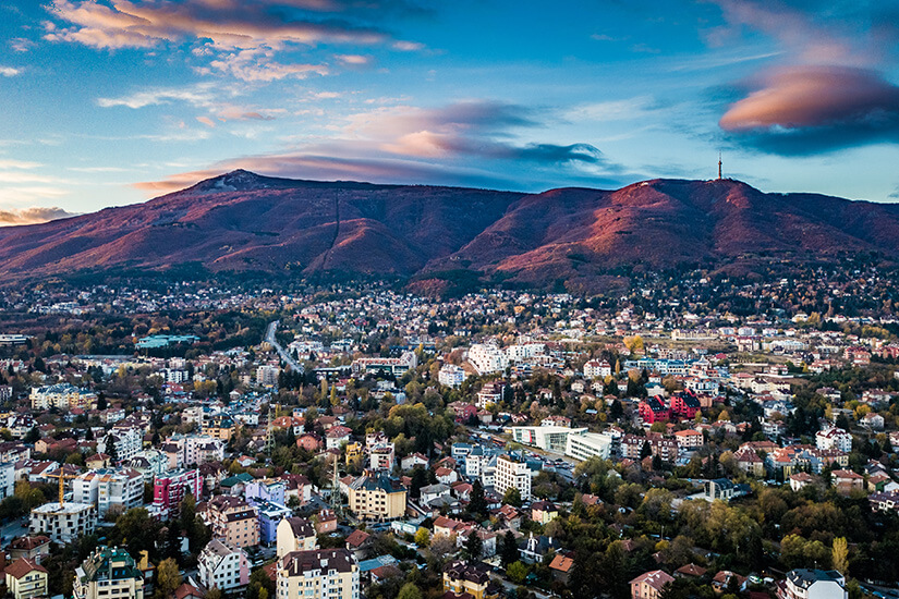 Unweit der Stadt, nur eine halbe Stunde Fahrtweg entfernt, befindet sich das Vitosha Gebirge, dessen 2.290 Meter hohe Ausläufer ihr schon von Weitem seht. Das Gebirge strahlt eine erhabene Ruhe aus und dient den Einheimischen der Stadt als Ort der Erholung.