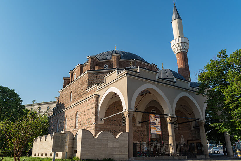 Wollt ihr das Innere der Moschee besichtigen, solltet ihr unbedingt Kopf, Schultern und Knie bedecken, um dem muslimischen Glauben euren Respekt entgegenzubringen. In getrennten Stockwerken beten hier vormittags und nachmittags gläubige Frauen und Männer aus Sofia. Ihr solltet die Banja Bashi Moschee jedoch außerhalb dieser Gebetszeiten aufsuchen. Hinter dem Gebäude lädt euch ein grüner Park zum Spazieren, Ausruhen oder Flanieren ein.