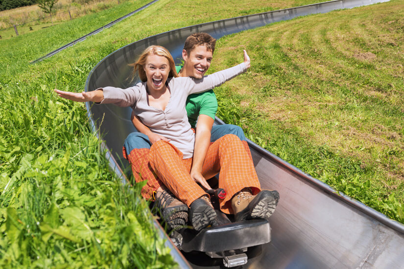 Während im Winter die idealen Voraussetzungen für eine Rodelfahrt durch Schnee und Eis bestehen, muss eine Sommerrodelbahn andere Bedingungen erfüllen. So handelt es sich in manchen Fällen um eine Art Rutschbahn, die mit Schlitten oder ähnlichen Fahrzeugen befahren wird. Eine andere Variante umschreibt schienengeführte Rodelbahnen, die sogenannten “Coaster”. Wie lang und wie kurvenreich es bergab geht, bestimmt der Verlauf der Rodelbahn. Die Geschwindigkeit hingegen könnt ihr, bis zum erreichbaren Maximum, durch die jeweiligen Bremssysteme selbst festlegen. Dadurch könnt ihr die sommerliche Talfahrt richtig genießen!