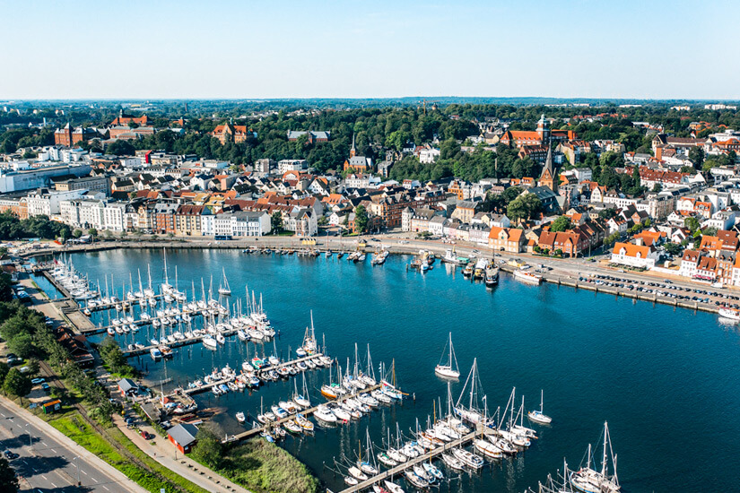 Nur etwa 40 Minuten Fahrtzeit mit dem Auto trennen Flensburg und Sønderborg voneinander. Daher könnt ihr einen Urlaub in einem der beiden Orte mit dem Besuch des jeweils anderen verbinden. Auch Reisende ohne Auto können den Plan umsetzen und fahren mit einem Fernbus binnen 1,5 Stunden ans Ziel. Dieser startet mehrmals täglich. In Flensburg locken Sehenswürdigkeiten wie der alte Museumshafen und ebenfalls eine hübsche Altstadt. Weiterhin gibt es noch mehr Museen für euren Wissenshunger und die Gelegenheit für Schlemmereien aus der schleswig-holsteinischen Küche.