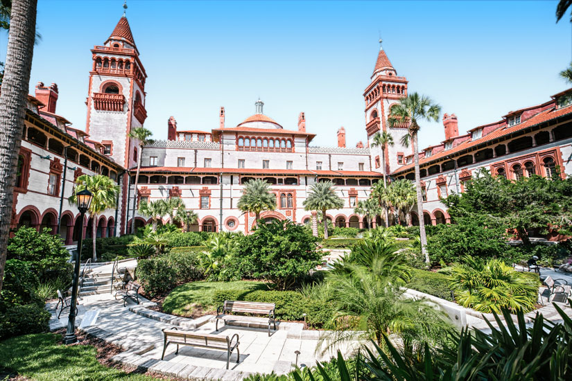 Ein wahrlich beeindruckendes Gebäude befindet sich mitten im Stadtkern: das Flagler College. Das prunkvolle Gebäude im spanischen Renaissance-Stil war früher das Ponce de León-Luxushotel, was die Tatsache erklärt, warum es so ein Prachtbau ist. Übernachten könnt ihr hier nicht mehr, denn das ehemalige Hotel ist inzwischen Teil der örtlichen Universität, aber von innen wie von außen ist dieses Gebäude wirklich atemberaubend schön.