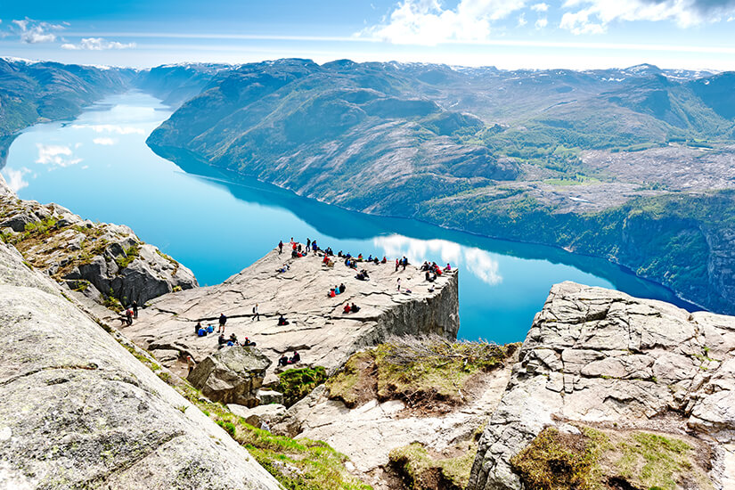 Fahrkarten für Kreuzfahrten oder Bootsausflüge lassen sich vorab online oder vor Ort bei der Touristeninformation buchen. Besonders beliebt sind die Touren im Lysefjord, die teils auch Wanderungen zum Preikestolen enthalten. Der 40 Kilometer lange und bis zu 500 Meter tiefe Fjord hat viele glatte Steilwände mit schöner heller Färbung. Neben dem Preikestolen ist hier auch der Kjerag zu finden, der 1.100 Meter hoch ist und sich von geübten Wanderern erklimmen lässt.