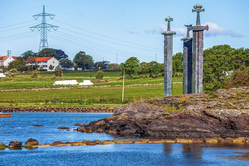 Etwas außerhalb von Stavanger, am Hafrsfjord, ist das Denkmal Sverd i fjell, was so viel heißt wie “Schwerter im Felsen”, zu sehen. Hier vereinte Harald Schönhaar der Sage nach im Jahr 872 die Wikinger zu einem Königreich. Die drei Schwerter symbolisieren Frieden, Einheit und Freiheit. Ihre Griffe sind Schwertern aus verschiedenen Landesteilen nachempfunden. Das Denkmal stammt aus dem Jahr 1983.