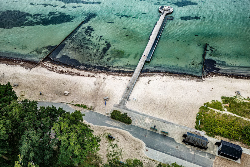 In der Nähe von Sønderborg, auf Deutsch Sonderburg, liegt der Den Sorte Strand, der sich auch gut als Tagesausflug ab Flensburg eignet. Denn mit dem Auto seid ihr in etwas unter einer Stunde am Strand. Dort könnt ihr über eine Badebrücke und eine Rampe bei Bedarf direkt mit dem Rollstuhl ans Wasser fahren. Der barrierefreie Zugang erleichtert den Besuch auch mit Kinderwagen. Der Name, der so viel wie „Schwarzer Strand“ bedeutet, kommt von einer Badeanstalt, die sich hier früher befand und aus schwarz gestrichenen Gebäuden bestand.