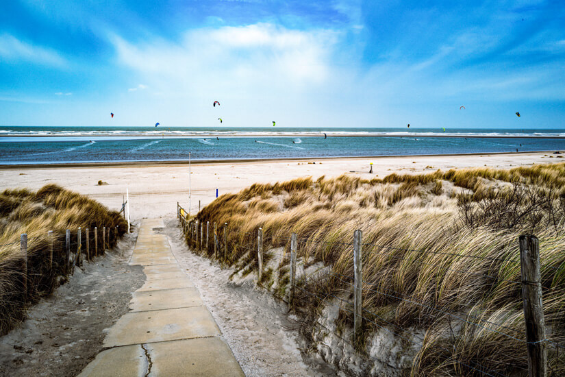 Einer der bekanntesten Urlaubsorte in Holland ist Scheveningen, an dem es zu mancher Zeit sehr voll werden kann – insbesondere in den Sommermonaten. Mit dem Strand von Kijkduin gibt es daher eine Alternative in der Nähe von Den Haag. Ihr erreicht den kleinen, aber feinen Strand von Den Haag oder von Scheveningen aus mit dem Fahrrad, dem öffentlichen Nahverkehr oder dem Auto. Ein Parkplatz ist vorhanden. Während der Hauptsaison von März bis Oktober gibt es viele Beach Bars am Strand von Kijkduin, aber auch in den Wintermonaten könnt ihr an der Promenade oder in einer Hotelbar sitzen und den Blick genießen. Freut euch auf einen ruhigen, entspannten Strand. Wer gern joggen geht oder Kitesurfen ausprobieren möchte, ist hier ebenfalls an der richtigen Stelle. Die Zandmotor-Halbinsel bietet optimale Bedingungen zum Kiten – laut Profis sogar die Besten.