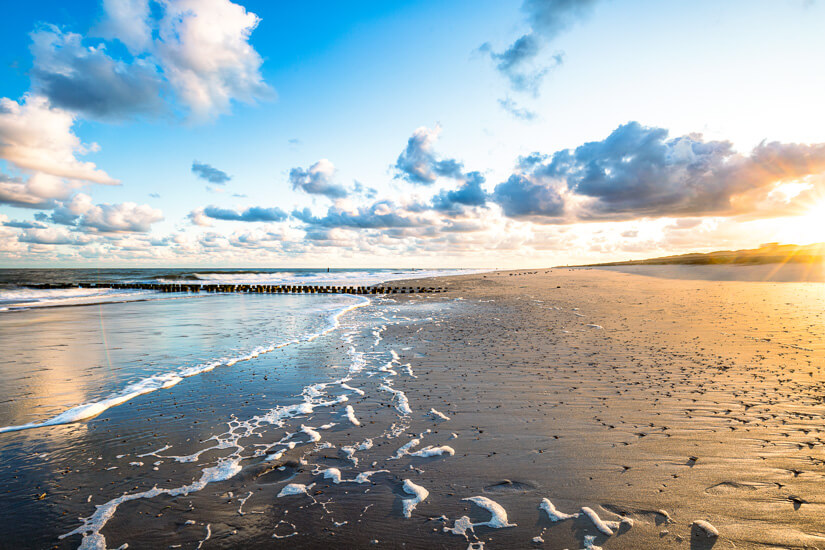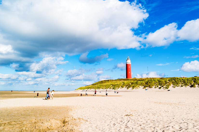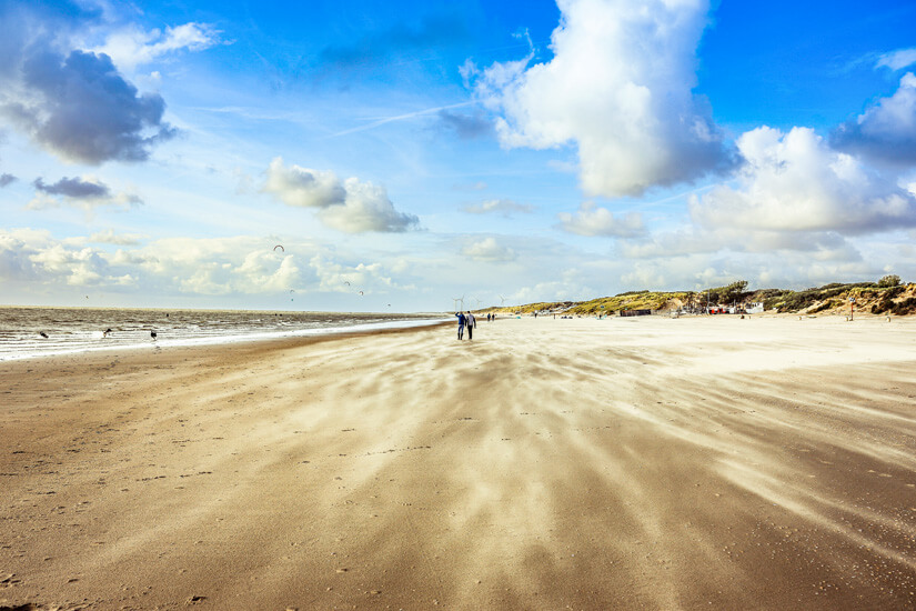 Die Westfriesischen Inseln in Nordholland grenzen an die Ostfriesischen Inseln in der deutschen Nordsee. Die wohl bekannteste der holländischen Inseln ist Texel, die mit einer Länge von 23,7 Kilometern und einer Breite von 9,6 Kilometern die größte Insel darstellt. Rund 30 Kilometer strahlend weißer Sand lassen die Herzen von Urlaubsfans an der Westseite der Insel höherschlagen. Besonders schön ist Paal 17 mit seinem Strandpavillon in der Nähe der Ortschaft De Koog. Hier seht ihr nicht selten Drachen in der Luft oder Kitesurfer auf dem Wasser. Auch Strandsegeln oder Fahrten mit Blokarts sind hier in bestimmten Bereichen möglich. Im Sommer findet ein Festival statt, bei dem ihr zu lauter Musik im Sand tanzen könnt. Empfehlenswert ist auch Paal 9 bei Den Hoorn, denn der Strand ist sehr weit und fein und gerade bei Familien sehr beliebt. Sollte das Wetter nicht mitspielen, findet ihr hier auch einen gemütlichen Pavillon, der euch mit heißen Getränken und Snacks versorgt.