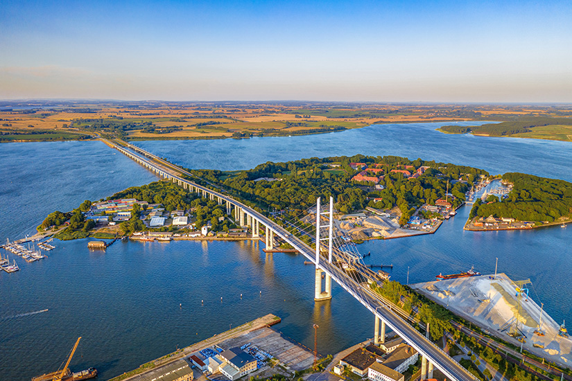 Wenn ihr mit dem Auto diese Brücke überquert, macht ihr nicht nur einen schönen Ausflug. Ihr fahrt über das Wahrzeichen von Stralsund, welches ein rekordverdächtiges Bauwerk ist. Die Rügenbrücke ist die größte Schrägseilbrücke in Deutschland und befindet sich in einer Höhe von 127 Metern über dem Meeresarm. Sie ist etwa vier Kilometer lang und ähnelt optisch einer gigantischen Stimmgabel. Die Brücke verbindet die Ostseeinsel mit dem Festland.