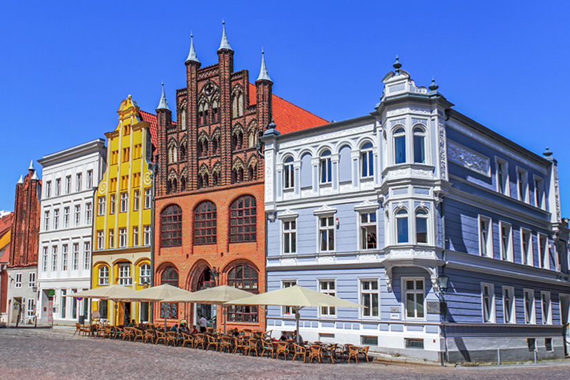 Bei einem Spaziergang durch die malerische Altstadt von Stralsund zeigen sich viele historische Sehenswürdigkeiten. Das Stadtbild ist geprägt von schmuckvollen Giebelhäusern und stattlichen Bürgerhäusern, die an die Blütezeit der Hansestadt erinnern. Die Altstadt grenzt an den Strelasund an und liegt auf einer Insel, die von mehreren Teichen umgeben ist. Sehenswert sind vor allem der Alte Markt mit dem prunkvollen Rathaus und der Artushof.