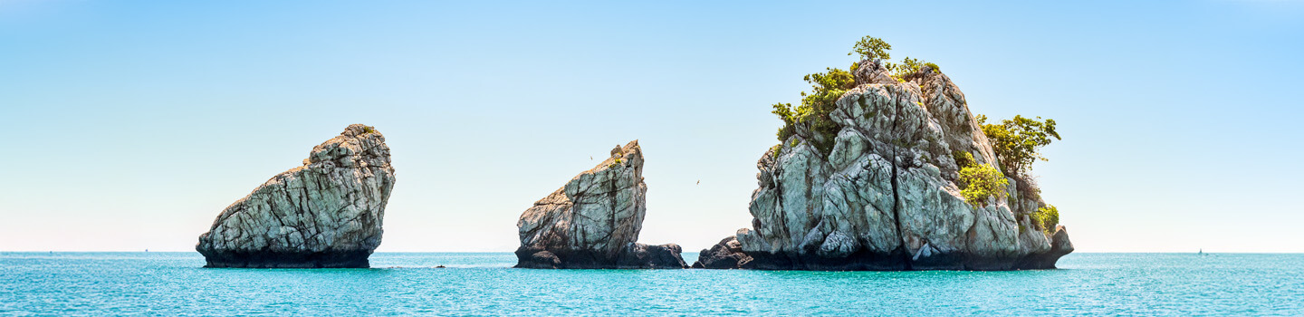 Die Inseln Koh Samui, Koh Phangan und Koh Tao sind wie drei Geschwister – jede mit ihrer eigenen Persönlichkeit, ihrem eigenen Rhythmus, aber verbunden durch das türkisfarbene Meer des Golfs von Thailand. Wenn ihr von tropischen Paradiesen träumt, seid ihr hier genau richtig – und Inselhüpfen ist definitiv eine fantastische Idee! Die Verbindungen zwischen den Inseln sind unkompliziert, und jede Station bereichert eure Reise um eine neue Facette. Koh Samui ist die eleganteste der drei, bekannt für ihre Mischung aus natürlicher Schönheit und moderner Infrastruktur. Ein Strand, den ihr auf keinen Fall verpassen solltet, ist der Lamai Beach: weicher Sand, Palmen, kristallklares Wasser und charmante Restaurants, die euch zum Verweilen einladen.