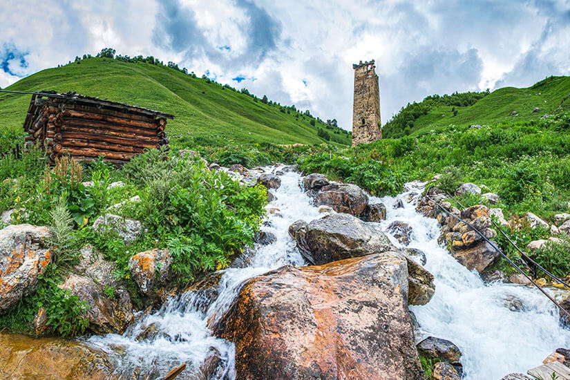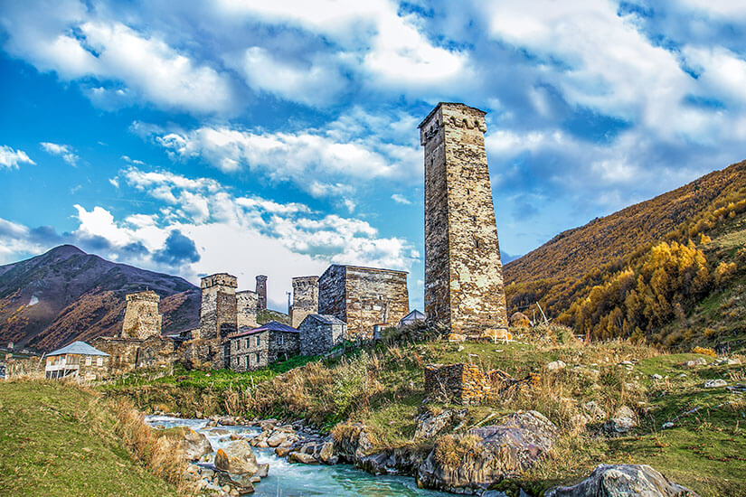 Die knapp 20 bis 25 Meter hohen Wehrtürme in Swanetiens Dörfern sind ein echtes Wahrzeichen in dem georgischen Gebiet. Sie wurden größtenteils im Mittelalter als Schutz der Bevölkerung erbaut. Näherte sich eine Gefahr, gab es in einem höheren Turm Rauchzeichen, welches dann an die übrigen, niedrigeren Türme weitergeleitet wurde. Die Bauwerke konnten mit ihren vielen Etagen auch bequem als Wohn- und Lagerraum genutzt werden. So befand sich etwa in der untersten Etage das Vieh der Besitzer, darüber die Lagerung von Heu und Futter und anschließend die Wohn- und Schutzräume. Einige Türme können bestiegen werden, wodurch sich traumhafte Ausblicke ergeben. Außerdem fungieren viele von ihnen bis in die heutige Zeit als praktische Speicher für Getreide. Sie haben daher auch unabhängig von ihrem kulturellen Status durchaus eine Daseinsberechtigung.