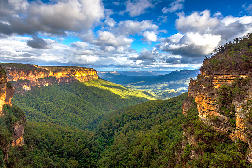 Plant ihr einen Wandertrip durch das beliebteste Naturschutzgebiet von New South Wales, solltet ihr einen Tagesausflug in den Blue Mountains National Park machen. Hier erwarten euch verwunschene Hochebenen, dichte Wälder, tiefe Schluchten und reißende Bäche – eben alles, was das Herz eines Naturliebhabers begehrt. Das Landschaftsschutzgebiet verdankt seinen Namen übrigens einem Nebel, der die umliegenden Berge blau erscheinen lässt. Dieser entsteht durch die ätherischen Öle, welche durch die zahlreichen Eukalyptusbäume verströmt werden. Steht ihr besonders früh auf, werdet ihr mit einem besonders tiefen Blauton überrascht, der am Morgen besonders stark ausgeprägt ist.