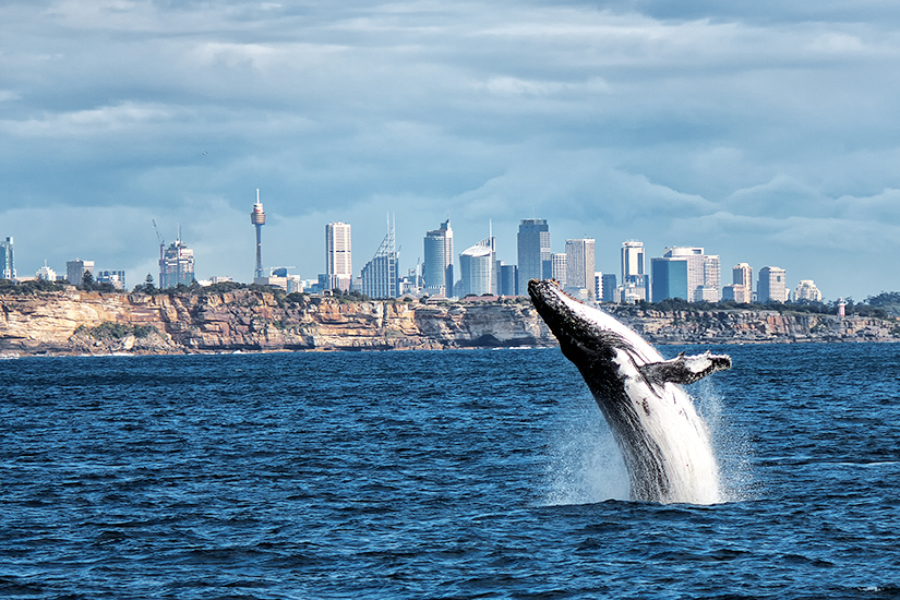 Rund um Sydney gibt es zahlreiche Aussichtspunkte, von denen ihr ein unvergleichliches Naturspektakel bestaunen könnt – nämlich Wale. Dies könnt ihr beispielsweise direkt auf dem Klippen-Weg über dem Bondi Beach oder am Aussichtspunkt North Head auf eigene Faust machen. Doch natürlich werden auch zahlreiche Boots- oder Kajaktouren angeboten, bei denen ihr den sanften Riesen beim Whale Watching noch ein ganzes Stück näherkommen könnt.