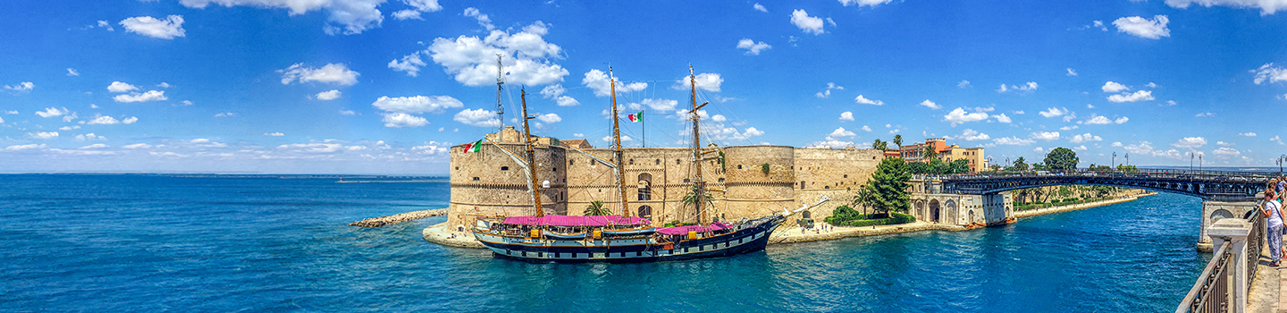 Das Castello Aragonese gehört zwingend zur Skyline von Tarent. Über die Jahrhunderte hinweg kamen der Festung in der Altstadt verschiedene Bedeutungen zu; unter anderem war sie ein Gefängnis, ein Standort der italienischen Marine und nun ist sie ein Ort der Erinnerung. Diesen können Besucher kostenfrei erleben. Die ersten Mauern des Gebäudes sollen bereits im Jahr 1.000 errichtet worden sein. Im Inneren der Festung sind Überbleibsel aus dieser Zeit zu besichtigen. Die heutige Ansicht des Bauwerks stammt größtenteils aus dem 15. Jahrhundert.