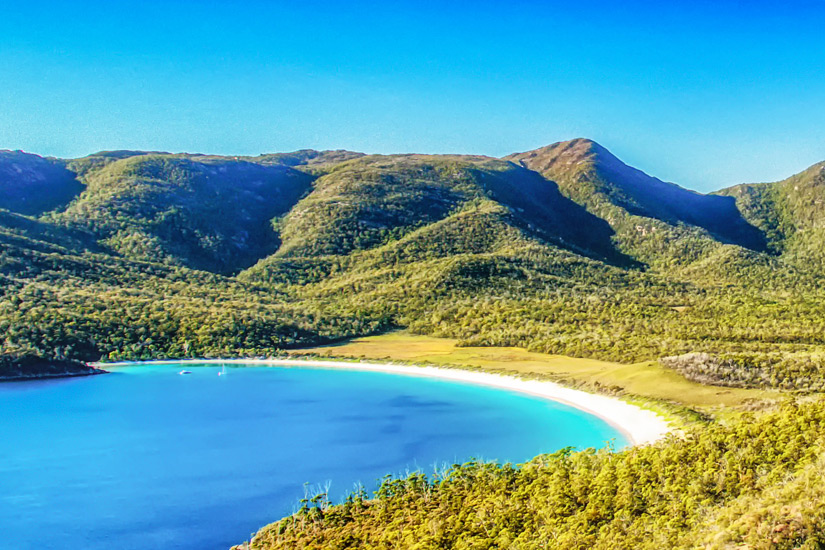 Wineglass Bay liegt an der Ostküste von Tasmanien und ist nach Meinung vieler Reisender der schönste Strand der Welt. Nur ein Blick genügt, und ihr wisst warum: Der Strand ist sichelförmig und besticht mit seinem schneeweißen, feinen Sand. Durch die Länge des Strandes genießt ihr hier auch zu beliebten Reisezeiten Ruhe und Erholung. Das Wasser ist seicht und eignet sich daher auch für vorsichtige Badeurlauber. Zudem habt ihr die Gelegenheit, bei einem Tauchgang die schönsten Fische direkt unter der Wasseroberfläche zu beobachten.