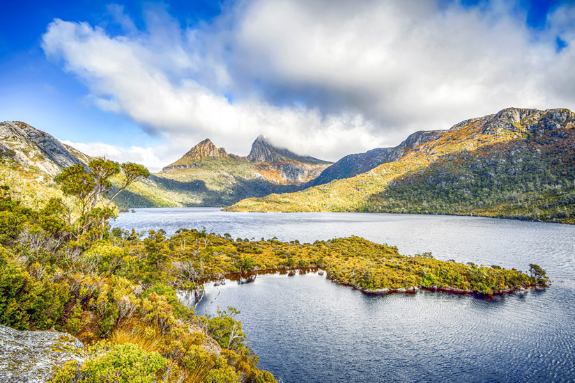Im tasmanischen Hochland erwartet euch ein Mekka für Naturfreunde: Der Cradle Mountain-Lake-St. Clair National Park, dessen Wahrzeichen Cradle Mountain mit riesigen Felsengipfeln in die Höhe ragt. Um dorthin zu kommen, ist zwar eine ambitionierte und mehrstündige Wanderung nötig, doch auch abseits des Berges ist der Nationalpark sehenswert. Freut euch in dem UNESCO Welterbe auf rund 1.600 Quadratkilometer Fläche, die angenehme Überraschungen wie Wasserfälle, tiefe Schluchten und idyllische Bergseen für euch bereithält. Auch Heideflächen und Moore gehören zu dem paradiesisch anmutenden Bild.